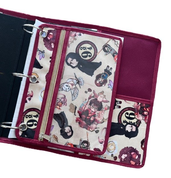 Realizada en cordura y cristal. Lleva un cierre reforzado y 3 arandelas para pasar por los anillos de la carpeta.