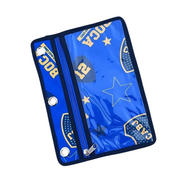 Realizada en cordura y cristal. Lleva un cierre reforzado y 3 arandelas para pasar por los anillos de la carpeta.
