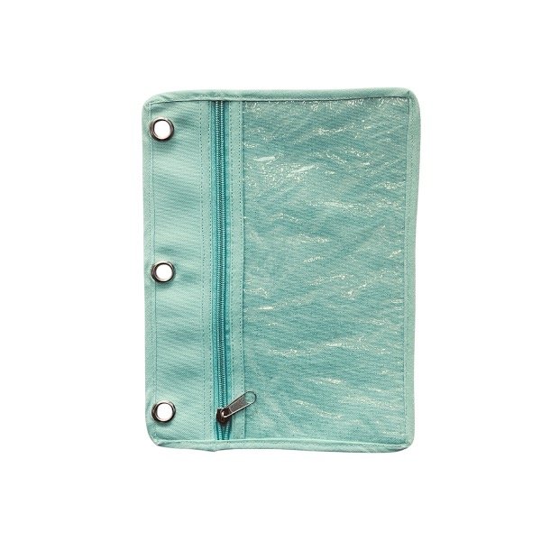 Realizada en cordura y cristal. Lleva un cierre reforzado y 3 arandelas para pasar por los anillos de la carpeta.
